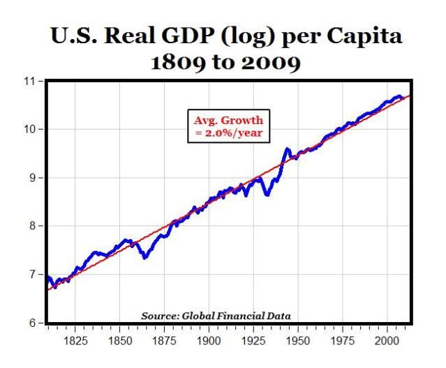 Biểu Đồ # 2 : Ty? Số Tăng Trưởng cuảTổng Sản Lượng Quốc Gia Hoa Kỳ Theo Đầu Người (1809-2009)